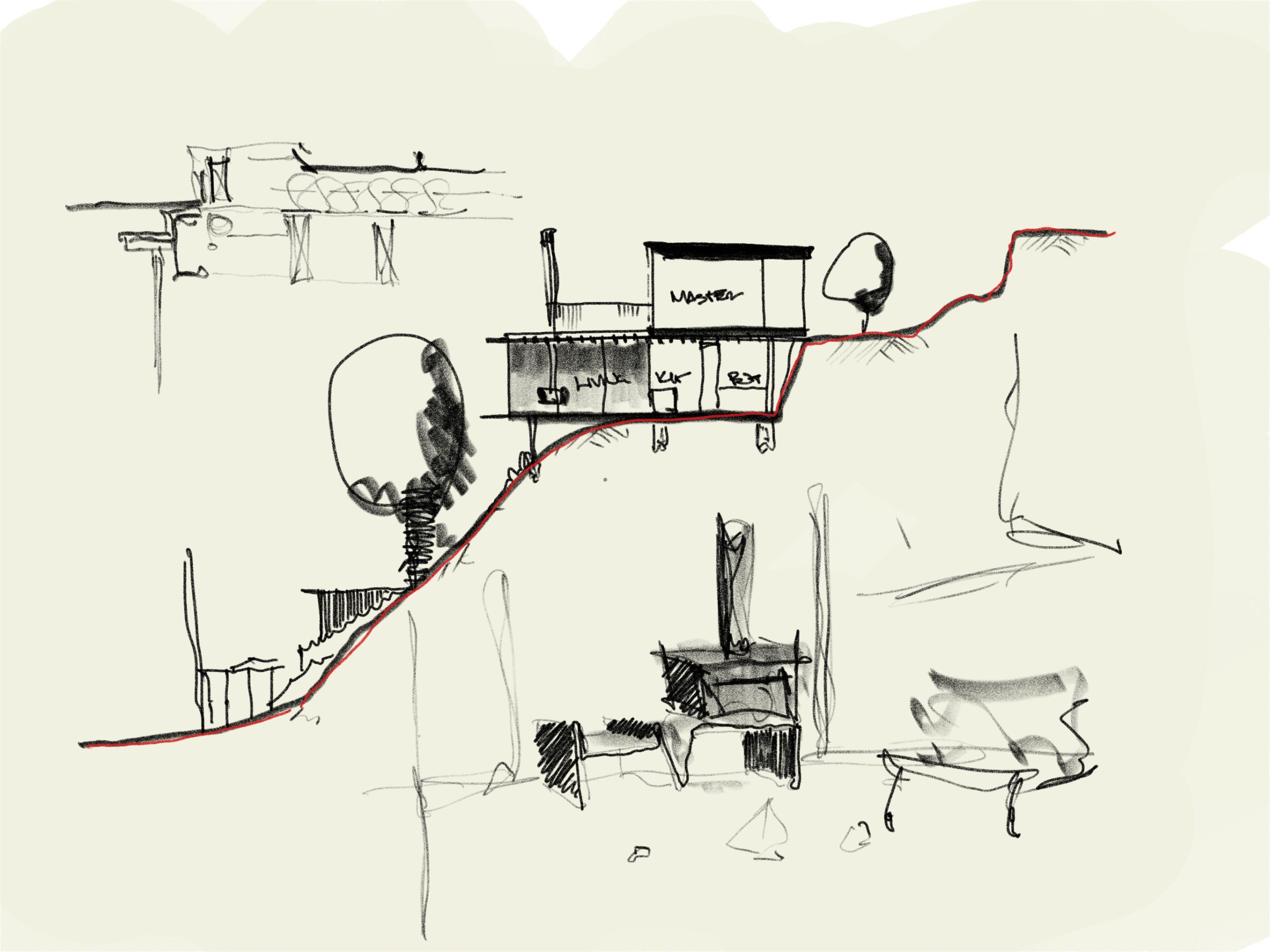 The site presented a rare convergence of challenges. Extreme slope, limited footprint, difficult access and tight planning controls would lead many to consider the land unbuildable. From the outset, the architecture was shaped by these constraints, using them to inform structure, spatial sequencing and material expression rather than resisting them.